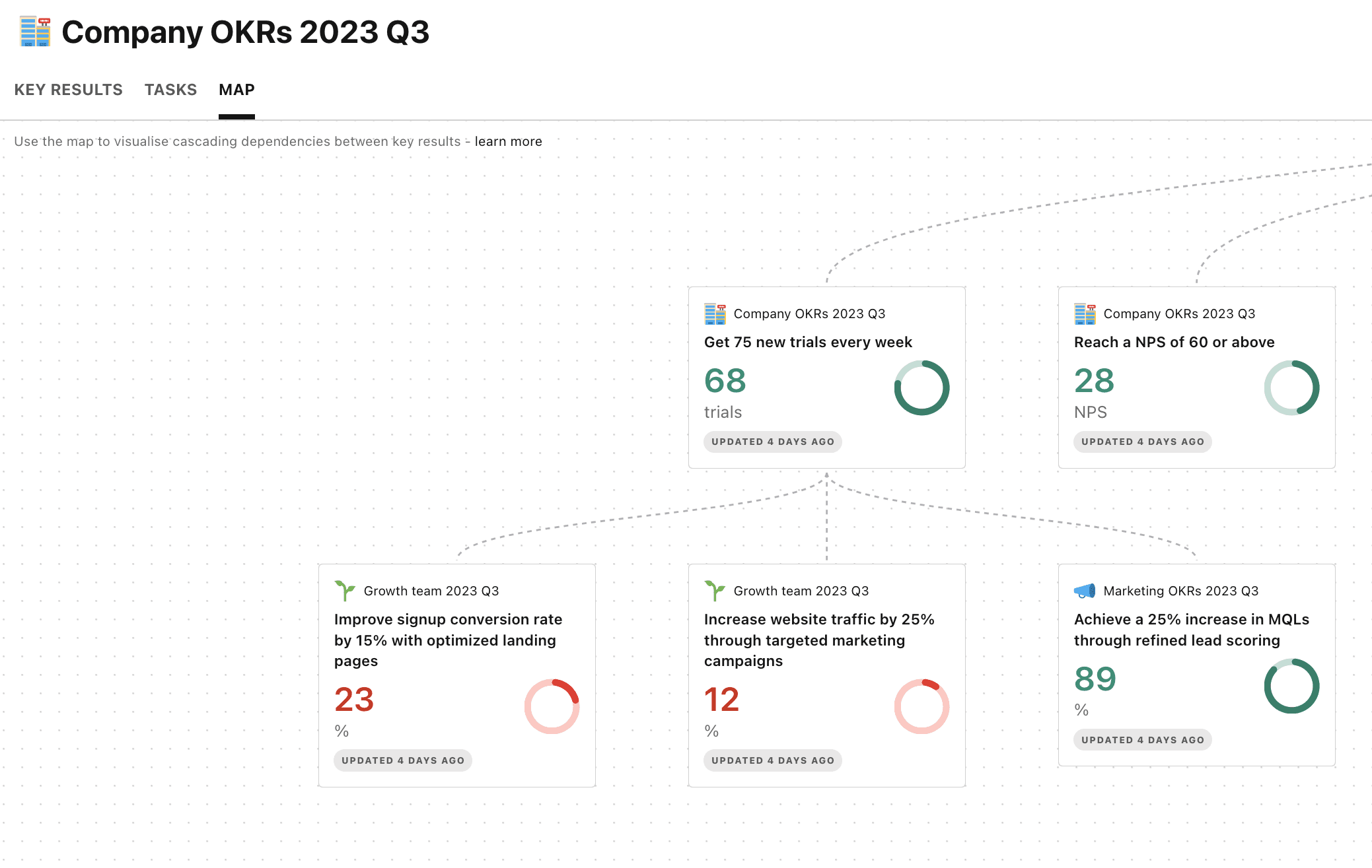 Sten: Essentially, we're goal-setting agnostic, so we don't really care what kind of goal-setting framework people are using. We have customers that use OKRs, we have customers that prefer discussing commitment and measures, or signals and measures.